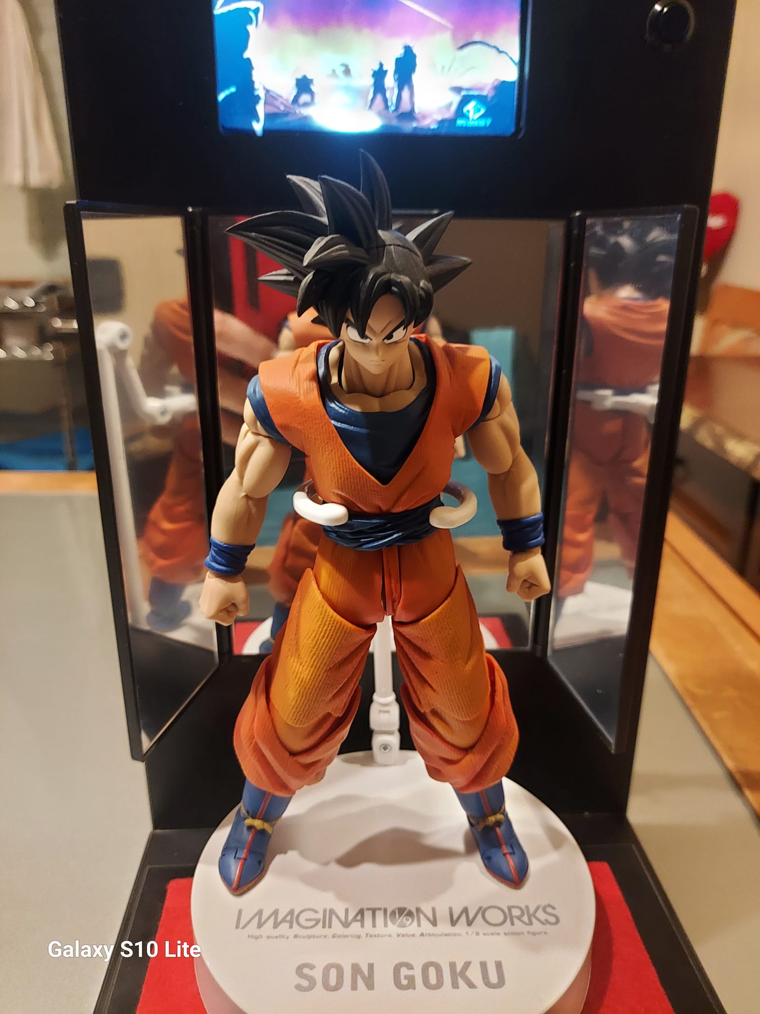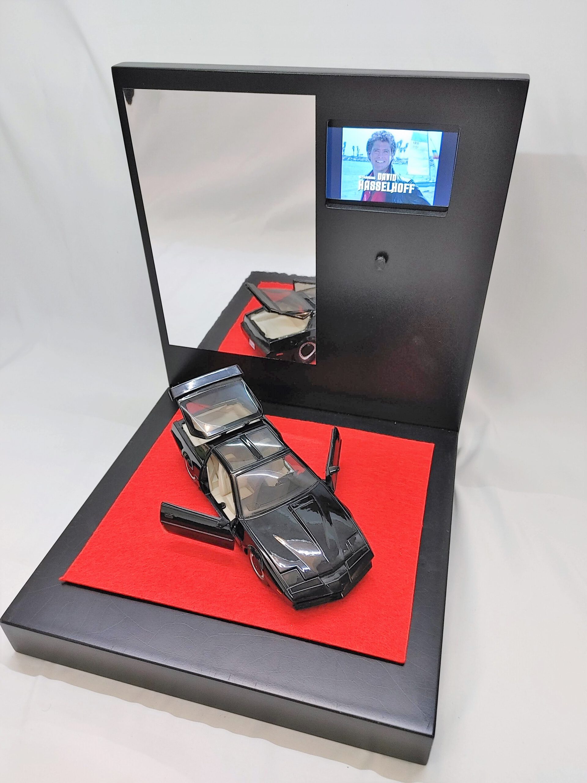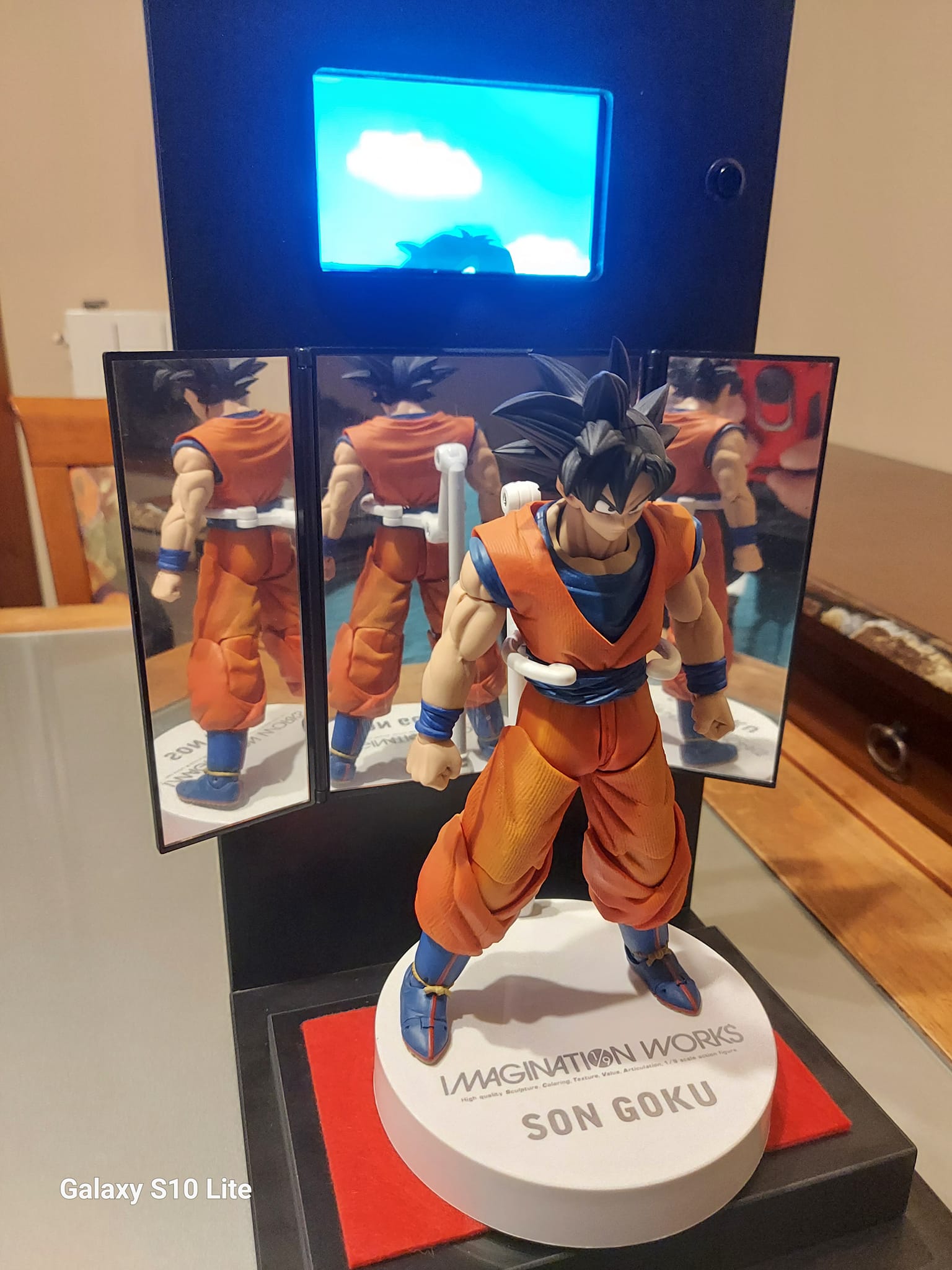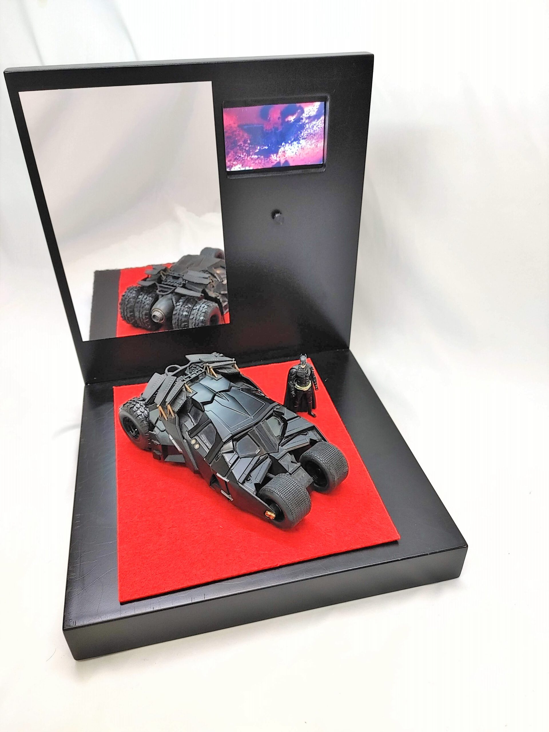 Espositore Multimediale per Action Figure e robot  Dotato di display  lcd  per riprodurre la sigla o video del tuo personaggio preferito Realizzato completamente in legno e metallo ​​​​​​​​​Dotato di un cavo usb posto nella parte posteriore per il collegamento al pc  per caricare i file  in  formato mp4